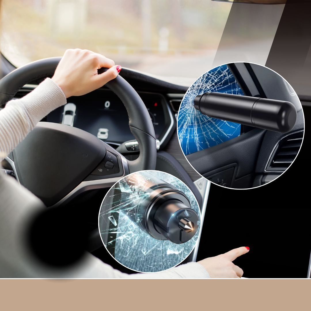 De SafeBreak is een compact hulpmiddel met een gordelsnijder en ruitbreker in één, speciaal ontworpen voor noodsituaties in de auto.