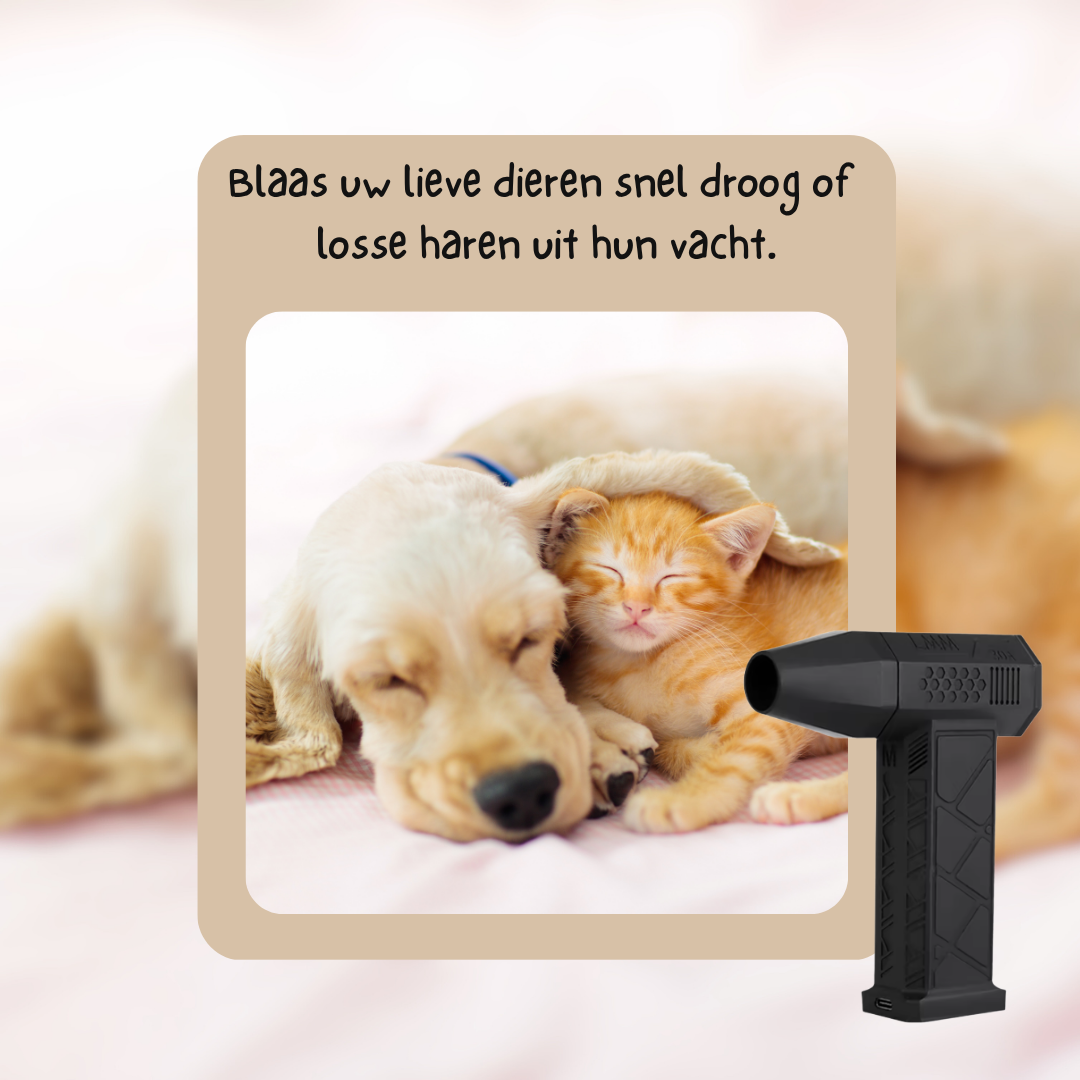 Met de AirStorm haal je 130.000 RPM aan pure blaaskracht in huis. Ideaal om je huisdier te drogen, je auto sneeuwvrij te maken of je elektronica stofloos te houden. Eén apparaat, eindeloos gemak.