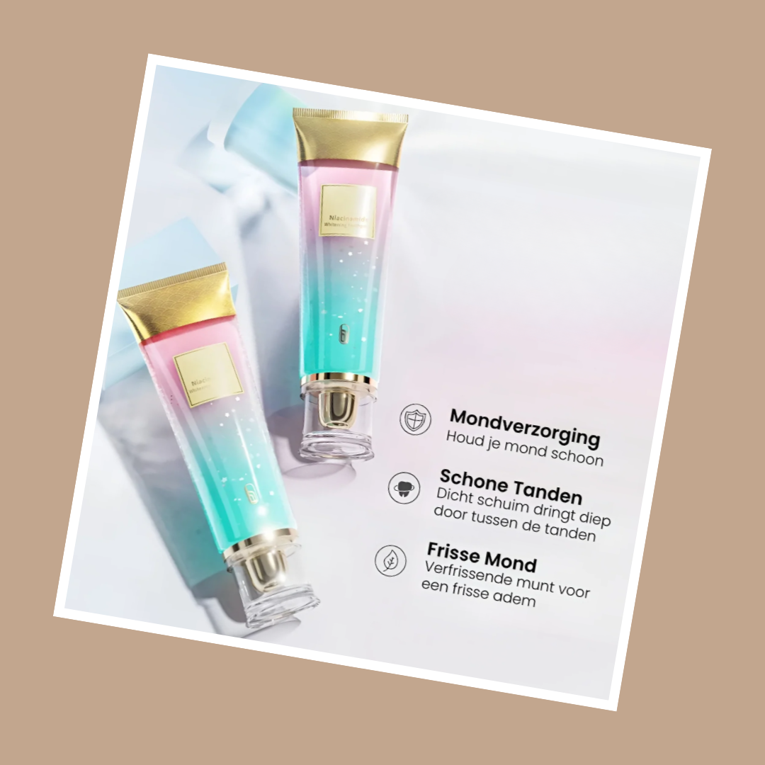 Bright ShinePasta met nicotinamide geeft je tanden hun natuurlijke helderheid terug. Voor mannen en vrouwen die hun glimlach vol zelfvertrouwen willen laten zien.